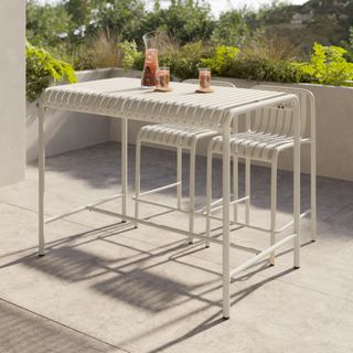 Stripes look good on everyone—especially on this glossy, powder-coated patio table. The Sarek is built from solid steel, kind of like Superman. Also like Superman? It’s sexy, dependable, and capable of saving your patio from the scourge of… ugly furniture.