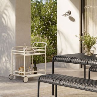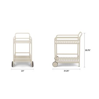 Stripes look good on everyone — especially on this glossy, powder-coated bar cart. The Sarek collection is built from solid steel, kind of like Superman. Also like Superman? It’s sexy, dependable, and can carry everything you need for a party in a single trip. Pretty super.