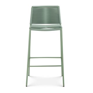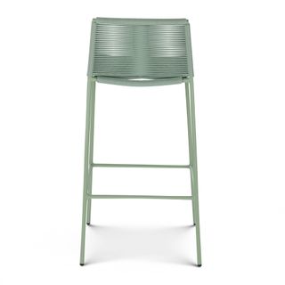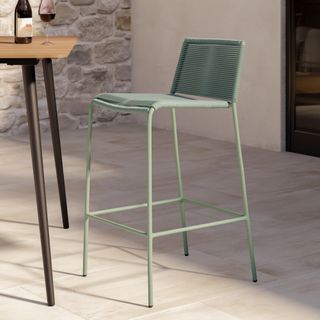 Crafted with woven fade-resistant polypropylene rope atop a solid metal frame, the Zina Bar Stool is durable enough for your happiest of hours outside. The streamlined silhouette keeps the look modern, while the seat and back provide structure and support.