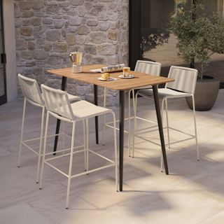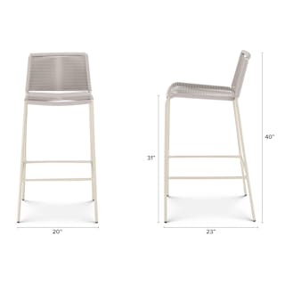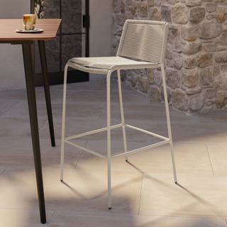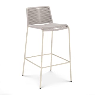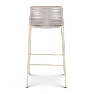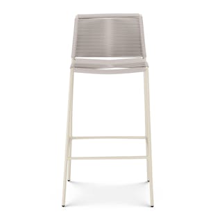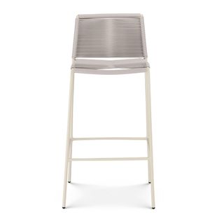 Crafted with woven fade-resistant polypropylene rope atop a solid metal frame, the Zina Bar Stool is durable enough for your happiest of hours outside. The streamlined silhouette keeps the look modern, while the seat and back provide structure and support.