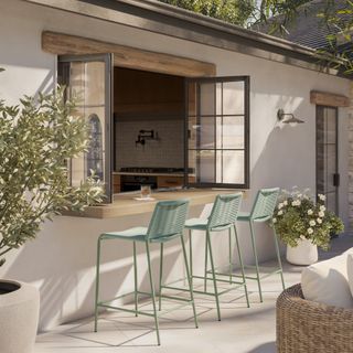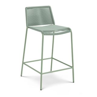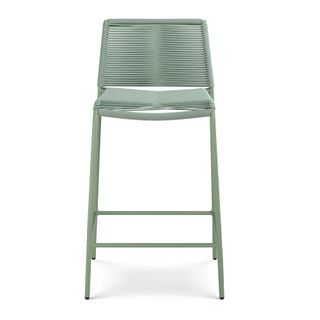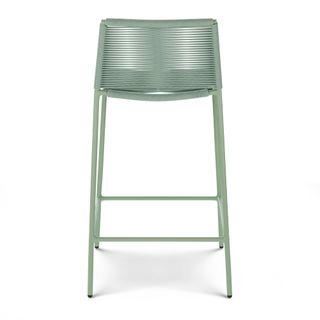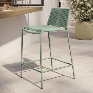 Crafted with woven fade-resistant polypropylene rope atop a solid metal frame, the Zina Bar Stool is durable enough for your happiest of hours outside. The streamlined silhouette keeps the look modern, while the seat and back provide structure and support.