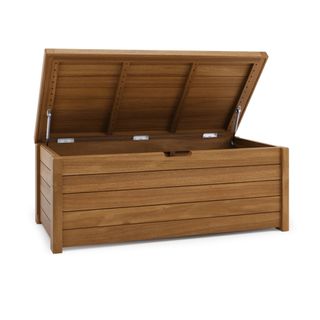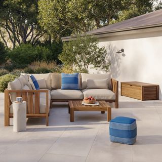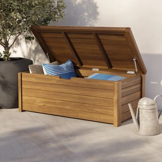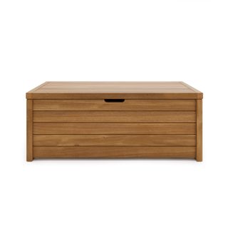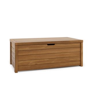 Casual and elegant, the Cove outdoor storage trunk combines sleek details with thoughtful storage — perfect for stashing throw pillows, extra blankets, and a lawn game or two.