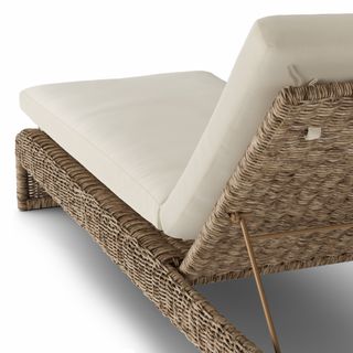 Artisanal technique, modern design. The Willa chaise lounge balances airy lightness with a bohemian touch. With a curved frame, adjustable backrest, and plush, weather-resistant cushions, the Willa is a beautiful combination of practicality and whimsical details.