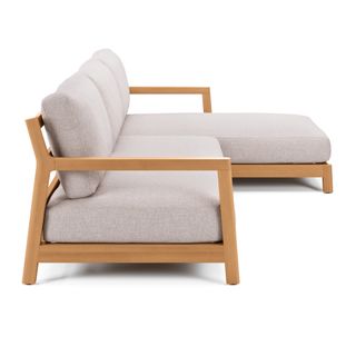 The Elise sectional embodies the ease we hope for every summer vacation. With oversized deep seats and extra-thick cushions, this sectional pairs beautifully with a frosty drink, a bowl of chips, and maybe the Elise coffee table.
