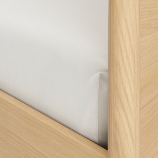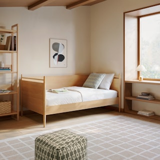 Simple pleasures. The Lenia bed draws inspiration from the Shaker school of design, featuring tapered legs, solid and veneered white oak, a panel headboard, concealed joinery, and an unadorned silhouette. Now available for the kids' and/or guest room, our twin daybed offers versatile functionality and an elegant design, ideal for maximizing space and comfort. Sweet dreams.
