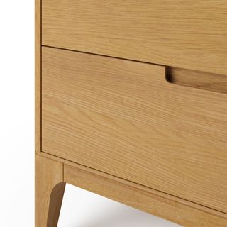 After making waves in the dining room, our Rosin collection is now ready to take on the bedroom—specifically, your bedroom... It's in for a major upgrade. Rosin's signature angled legs harmonize perfectly with the rest of the collection, its smooth, rounded corners and stylish cut-out handles, merge functionality with a hint of elegance. With its timeless coastal aesthetic, the Rosin bedroom collection blends elegance with pure comfort. What else would you need in a dresser? We consider it covered.