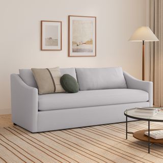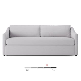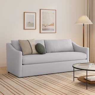 A minimal look with maximum impact. The Landry marries laid back comfort with elegant details to produce a sofa that is as comfortable hosting movie night as it is a cocktail hour. Sloping sleigh-style arms and clean straight lines make it simple to pair this sofa with many different styles. Try it with a warm white backdrop, against a wildly patterned rug, or draped with your favorite blanket. The Landry is easygoing style at its best.