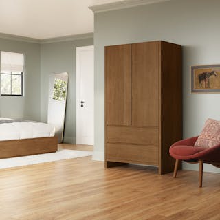 The strong, silent type. The Leif Armoire embodies the classic tropes we associate with Scandinavian good looks: tall, good-looking, sturdy, impeccable posture. With soft-close drawers and ample hanging space, you can rest assured that your Leif not only looks gorgeous, but it's also soft-spoken and sensitive to your (safety) needs.