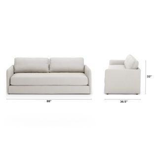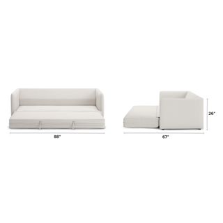 Ever looked at our sophisticated, and affordable Hanson and thought, "Huh, this thing looks so comfy, I wish they made a Sofa Bed version"? Well, dream no longer, the Hanson Sofa Bed is here to make all your slumber-themed dreams come true. Indistinguishable from the rest of the collection, with its crisp atomic lines and affordable mid-century treatments still present. But now, grab the two pulls on the backside of the seat cushion and unfold the mattress for a seamless transition—Mmmbop indeed.
