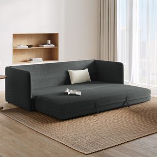 - Effortlessly transforms from sofa to bed by pulling up and out on the two attached straps