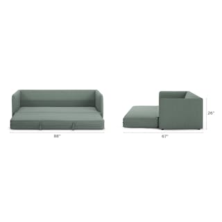 Ever looked at our sophisticated, and affordable Hanson and thought, "Huh, this thing looks so comfy, I wish they made a Sofa Bed version"? Well, dream no longer, the Hanson Sofa Bed is here to make all your slumber-themed dreams come true. Indistinguishable from the rest of the collection, with its crisp atomic lines and affordable mid-century treatments still present. But now, grab the two pulls on the backside of the seat cushion and unfold the mattress for a seamless transition—Mmmbop indeed.