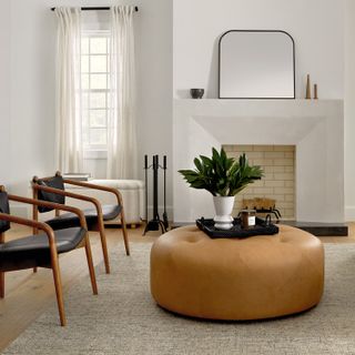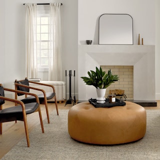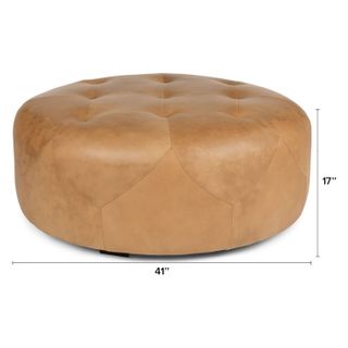 Not everyone goes home to a personal foot massage, but here's a good alternative: the Timpani charme tan ottoman says “hey girl, put your feet up.” The tufted leather topper makes it a nice footrest… and a great coffee table. This leather ottoman is business and party together. But it’s decidedly anti mullet. Natural color variations, wrinkles and creases are unique characteristics of aniline leather.