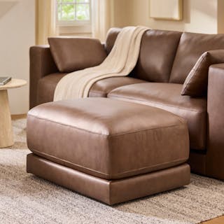 Whitmore 33" Leather Ottoman - Lucia Brown