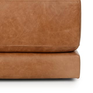 Drawing inspiration from Mid-century design, Whitmore blends timeless appeal with modern needs and ergonomics. Just like that comforting vintage leather jacket, Whitmore is upholstered in our full-aniline Salerno Tan leather for a soft, supple feel, creating a relaxed, lived-in look. Crafted with premium materials and time-tested construction, Whitmore is built for years' worth of lounging with friends and family.