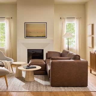 Drawing inspiration from Mid-century design, Whitmore blends timeless appeal with modern needs and ergonomics. Just like that comforting vintage leather jacket, Whitmore is upholstered in our semi-aniline Lucia Brown leather for a soft, supple feel, creating a relaxed, lived-in look. Crafted with premium materials and time-tested construction, Whitmore is built for years' worth of lounging with friends and family.