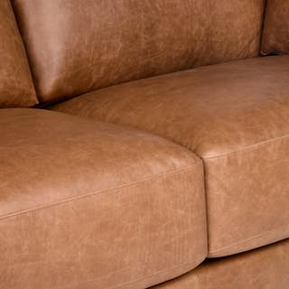 Drawing inspiration from Mid-century design, Whitmore blends timeless appeal with modern needs and ergonomics. Just like that comforting vintage leather jacket, Whitmore is upholstered in our full-aniline Salerno Tan leather for a soft, supple feel, creating a relaxed, lived-in look. Crafted with premium materials and time-tested construction, Whitmore is built for years' worth of lounging with friends and family.