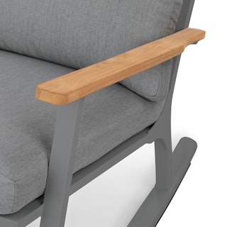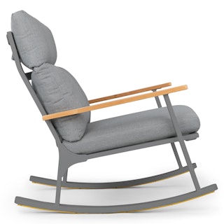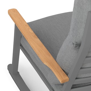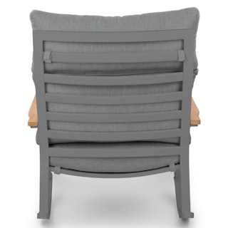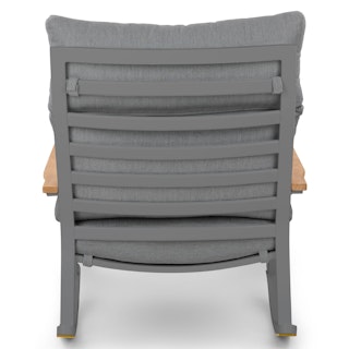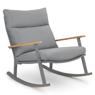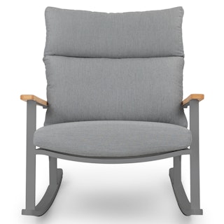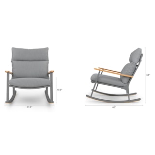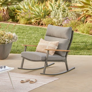 Gorgeous and oh so comfy to curl up in with a book. The seat cushion is firm, the back cushion is softer but supportive, and the rock is quite gentle.