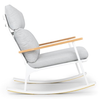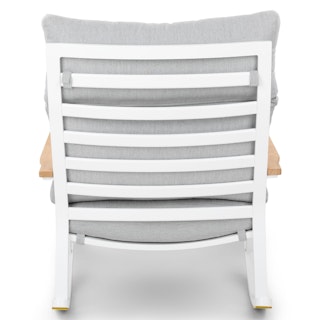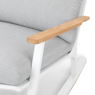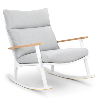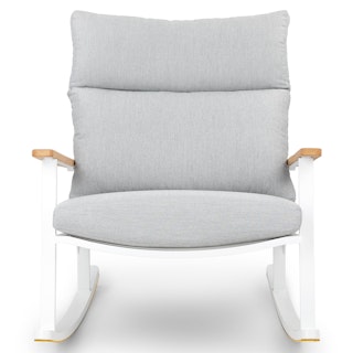 Gorgeous and oh so comfy to curl up in with a book. The seat cushion is firm, the back cushion is softer but supportive, and the rock is quite gentle.