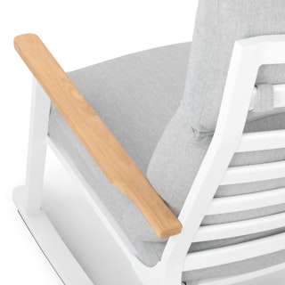 Gorgeous and oh so comfy to curl up in with a book. The seat cushion is firm, the back cushion is softer but supportive, and the rock is quite gentle. This was...  More