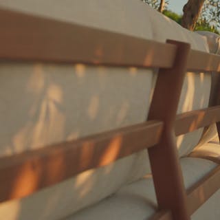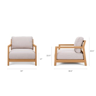 - Thick cushions upholstered in a UV and water-resistant Olefin fabric