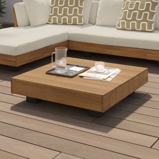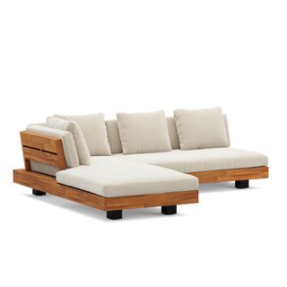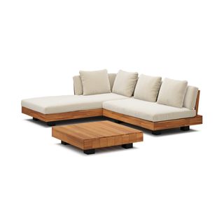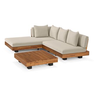 Get low. It will be love at first sight when you lay eyes (and then your whole body) on the Lubek Sectional Set. The L-shaped sectional features a solid acacia wood base and is complimented by structured yet comfortable weather-resistant cushions. Where will you put your snacks, you ask? The Lubek Coffee Table is just the spot. With matching solid acacia wood construction, it’s the perfect companion. This set was meant to be.