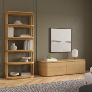 Gentle, curved edges with robust structural strength: Maren personifies the Scandinavian design style. Behind its gracefully curved exterior and soft-close doors, Maren offers expansive interior storage, and its modular design seamlessly integrates with other pieces in the collection—ensuring you always have space to showcase your personal interests and style.