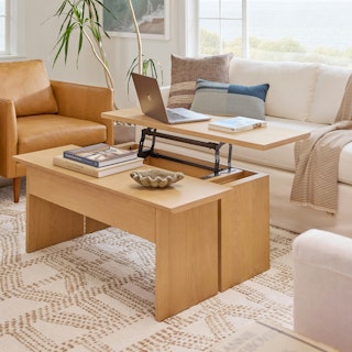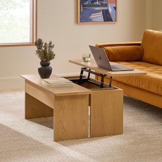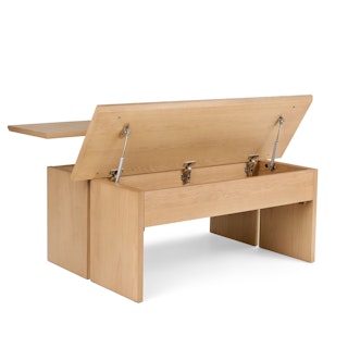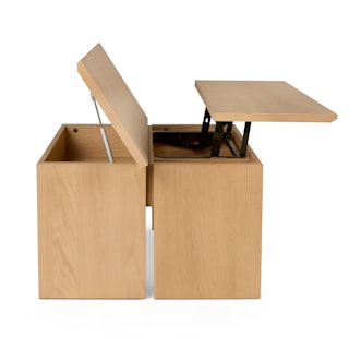 Make those work-from-the-sofa days a little easier with Karls multi-purpose tabletop. Last minute Zoom call? Effortlessly transform from a sleek coastal coffee table to a desk in seconds. Got some guests coming over and need to stash away the work gear? Karl's hinged tabletop offers ample storage, effortlessly transforming into a coffee table for drinks and snacks.