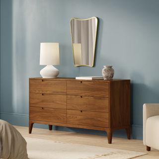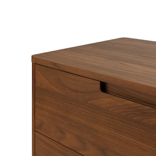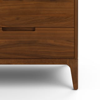 After making waves in the dining room, our Rosin collection is now ready to take on the bedroom—specifically, your bedroom... It's in for a major upgrade. Rosin's signature angled legs harmonize perfectly with the rest of the collection, its smooth, rounded corners and stylish cut-out handles, merge functionality with a hint of elegance. With its timeless coastal aesthetic, the Rosin bedroom collection blends elegance with pure comfort. What else would you need in a dresser? We consider it covered.