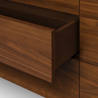 - Made from a mix of veneered and solid wood: veneer is highly durable, whereas solid wood is used to build beautiful details and support weight