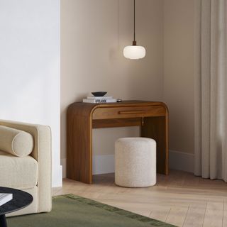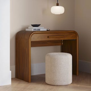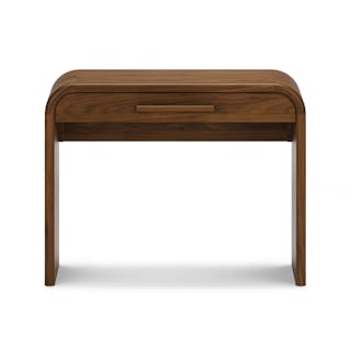 A design that's ahead of the curve. The Faydra Mini Desk is a desk at its most avant-garde. With a unique sloping design and sturdy construction, the Faydra is more than just a pretty desk: a spacious, veneered drawer topped off with a solid ash handle, this is a beautiful place to stash away the work mess at the end of the day.