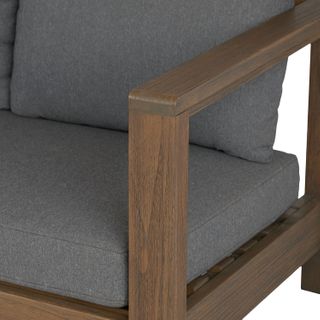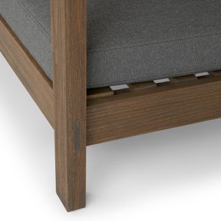- Loose seat and back cushions upholstered in a UV and water-resistant Olefin fabric