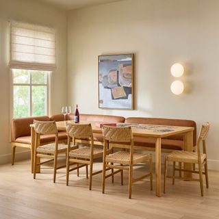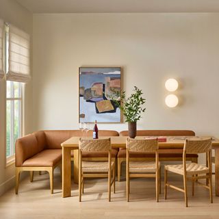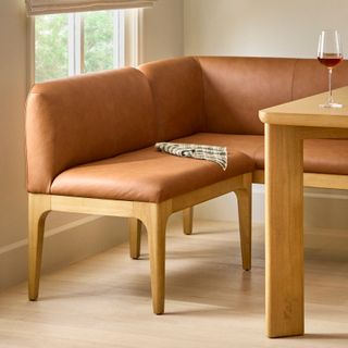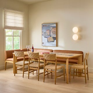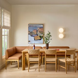 Your breakfast nook is in for a major upgrade. With solid wood legs, base, and densely packed foam seats wrapped in our soft and supple semi-aniline Lucia leather, the Rosin banquette is also—wait for it!—modular. What if your breakfast nook became... a breakfast wall... think about it.