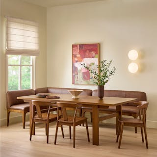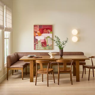 Your breakfast nook is in for a major upgrade. With solid wood legs, base, and densely packed foam seats wrapped in our soft and supple semi-aniline Lucia leather, the Rosin banquette is also—wait for it!—modular. What if your breakfast nook became... a breakfast wall... think about it.