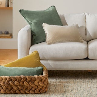 A stylish, velvet, understuffed scatter pillow. Constructed from our non-absorbent plush velvet with a piped edge and a soft foam and fiber insert, the Lucca pillow complements our other velvet pieces. Their airy insides allow you to fluff them up or smush them down repeatedly.