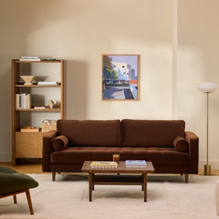 This coffee table is just what we needed! It’s mid-century modern, but still manages to provide a cozy vibe to our living room.