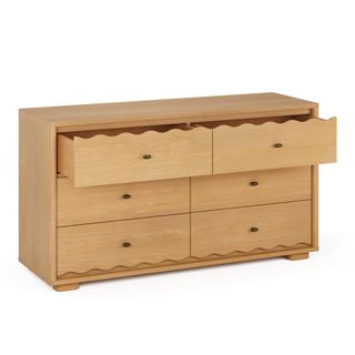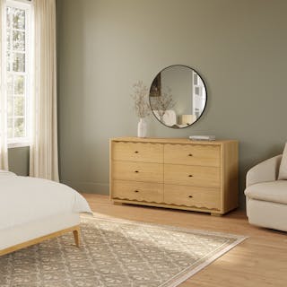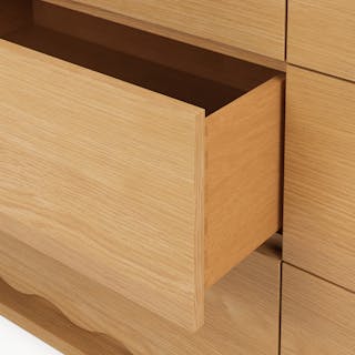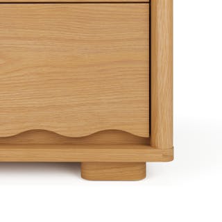 Quirky, charming, and practical—we get it, Boe, you’re cute. Inspired by Scandinavian simplicity, Boe features soft, rounded edges and beautifully scalloped details that infuse your home with playful sophistication. Its low, oversized feet give it a grounded presence, making it an effortlessly stylish and practical spot for your bedroom essentials.