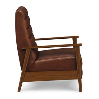 A master of disguise, the Ellow Recliner effortlessly transforms from a mid-century modern lounge chair to a deluxe recliner. Upholstered in Indiana Brown "pull-up" leather with solid walnut legs, the Ellow features a 3-point push back reclining mechanism that gives you more control over the way you lounge. All the way back for your afternoon nap, partially-reclined for a relaxed game show marathon, or fully upright when you’ve got company — the choice is yours.