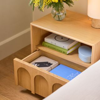 Playful but never silly, the Prima adds a little zhuzh to the utilitarian nightstand. Bedside storage? No: the Prima does not simply store things. It caresses them in its soft close drawer, readying your things for service. Built upon a plinth base, the Prima's drawers have a chamfered inset for easy opening without interrupting the arch line.
