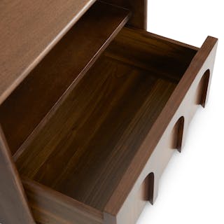 Playful but never silly, the Prima adds a little zhuzh to the utilitarian nightstand. Bedside storage? No: the Prima does not simply store things. It caresses them in its soft-close drawer, readying your things for service. Built upon a plinth base, the Prima's drawers have a chamfered inset for easy opening without interrupting the arch line.