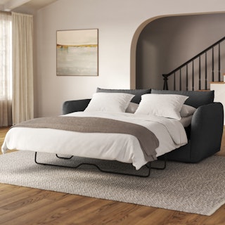 This is a beautiful, incredibly comfortable sofa. We chose it for a very tricky space because the stated dimensions when the bed is open were 75” but we learned...  More
