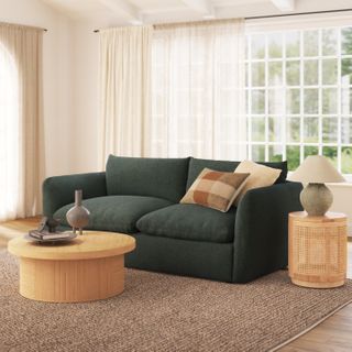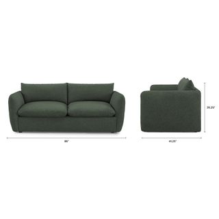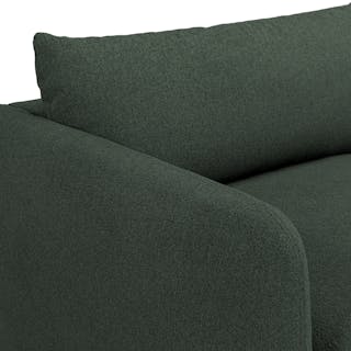 - Upholstered in a soft, non-absorptive bouclé fabric. Bouclé is an excellent choice for those who want an easy-to-care-for, style-forward sofa