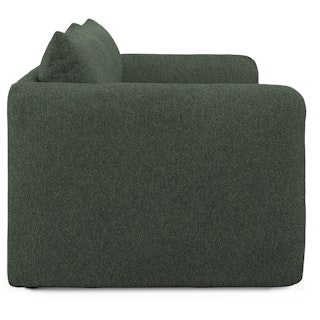 Upholstered in a soft, non-absorptive bouclé fabric. Bouclé is an excellent choice for those who want an easy-to-care-for, style-forward sofa