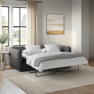 Cloud kingdom, population: you. The Leigh is our comfiest sofa ever, and now it's available as the comfiest hybrid of all: a sofa bed. Stuffed with super-soft foam and duck down, the Leigh is your perfectly-sinkable sofa solution that still looks polished and poised. Upholstered with stain-resistant Napa fabric, you can rest easy.