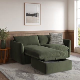 Hmm, there aren’t any reviews yet for the Leigh 86" Velvet Reversible Storage Sleeper Sectional - Hale Fir Green -