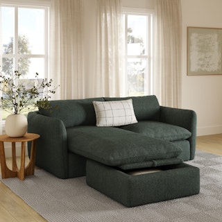 Cloud kingdom, population: you. The Leigh is our comfiest sofa ever, and now it's available as the comfiest hybrid of all: a sofa bed. Stuffed with super-soft foam and duck down, the Leigh is your perfectly-sinkable sofa solution that still looks polished and poised. Upholstered in a soft, non-absorptive bouclé fabric, you can rest easy.