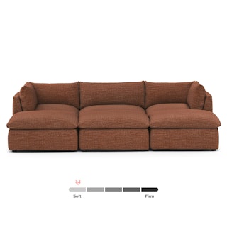 Cloud kingdom, population: you. The Leigh sofa is our comfiest sofa ever, with thoughtful details that make it the perfect place to put your feet up and nap/read/watch a show/snuggle/stare into the middle distance. Three seat styles mean you can build the perfect spot to crash, and gently angled armrests make it easy to relax without immediately falling asleep. Upholstered with stain-repellant Napa fabric, the Leigh is here to help you to rest easy.