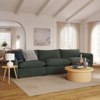 Cloud kingdom, population: you. The Leigh sofa is our comfiest sofa ever, with thoughtful details that make it the perfect place to put your feet up and nap/read/watch a show/snuggle/stare into the middle distance. Three seat styles mean you can build the perfect spot to crash, and gently angled armrests make it easy to relax without immediately falling asleep. Upholstered with our ever-so-soft bouclé fabric, the Leigh is here to help you to rest easy.