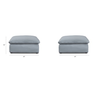 Cloud kingdom, population: you. The Leigh ottoman is our companion piece to our comfiest sofa ever. Upholstered with stain-resistant Lifeguard fabric, the Leigh ottoman is here to help you rest easy.