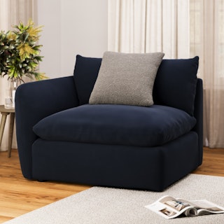 Cloud kingdom, population: you. The Leigh sofa is our comfiest sofa ever, with thoughtful details that make it the perfect place to put your feet up and nap/read/watch a show/snuggle/stare into the middle distance. Three seat styles mean you can build the perfect spot to crash, and gently angled armrests make it easy to relax without immediately falling asleep. Upholstered with stain-resistant Hale fabric, the Leigh is here to help you to rest easy.