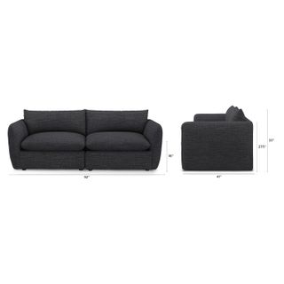 Cloud kingdom, population: you. The Leigh sofa is our comfiest sofa ever, with thoughtful details that make it the perfect place to put your feet up and nap/read/watch a show/snuggle/stare into the middle distance. Three seat styles mean you can build the perfect spot to crash, and gently angled armrests make it easy to relax without immediately falling asleep. Upholstered with stain-resistant Napa fabric, the Leigh is here to help you to rest easy.